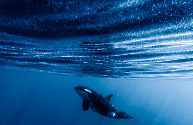 Eso mismo es lo que deja en evidencia la foto tomada por Marín: una orca cazando junto a su familia cerca de la superficie entre distintos tonos de azules y un blanco y negro característico de su apariencia que resalta en la imagen.