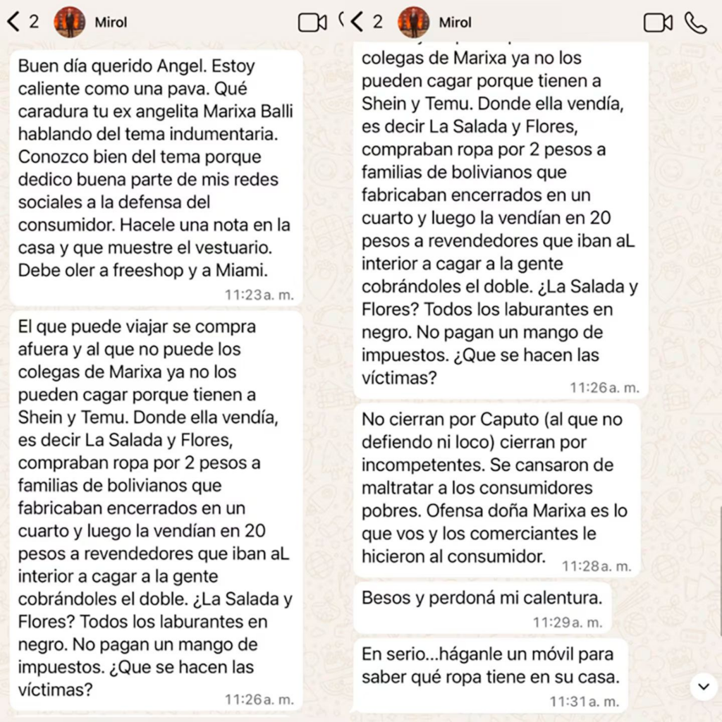 “¿Querés que te los lleve, Ángel?“, preguntó, picante, el presentador. ”Me hartaste, Mirol. Hacé lo que se te cante y lo que te haga feliz. Si eso te hace feliz, tráeselo», pidió Balli.